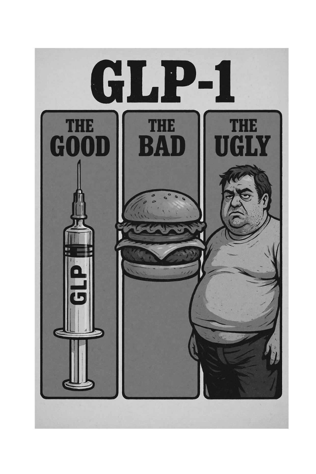 GLP-1 receptor agonists (e.g., semaglutide branded as Ozempic or Wegovy, tirzepatide branded as Mounjaro or Zepbound) are injectable drugs that mimic the gut hormone GLP-1 to slow digestion, blunt hunger, and improve blood sugar control (Wikipedia contributors, 2025a). Originally designed for type 2 diabetes, they exploded in popularity when clinical trials showed 15–25% average weight loss, far surpassing most diet or lifestyle programs (PubMed, 2024). This “Hollywood drug” reputation made them a cultural phenomenon—fueled by celebrity stories, TikTok testimonials, and mainstream media hype (Los Angeles Times; People.com).